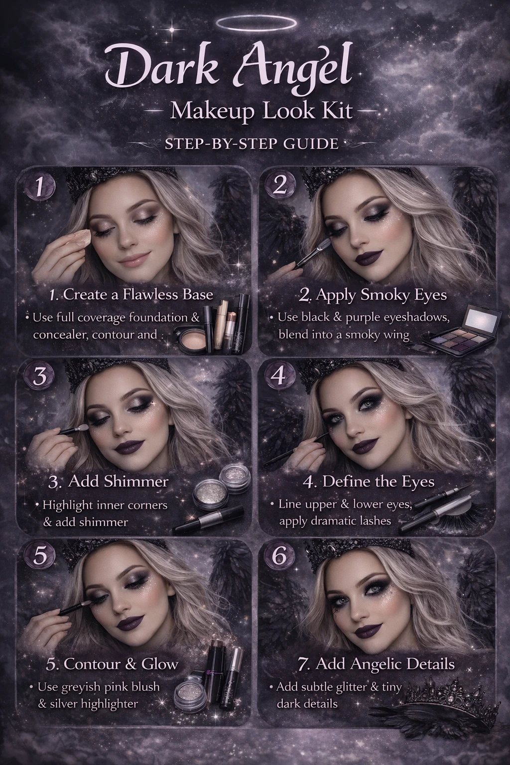 This tutorial guides you from prep to completion, focusing on techniques that highlight the ethereal yet dark essence of this look.